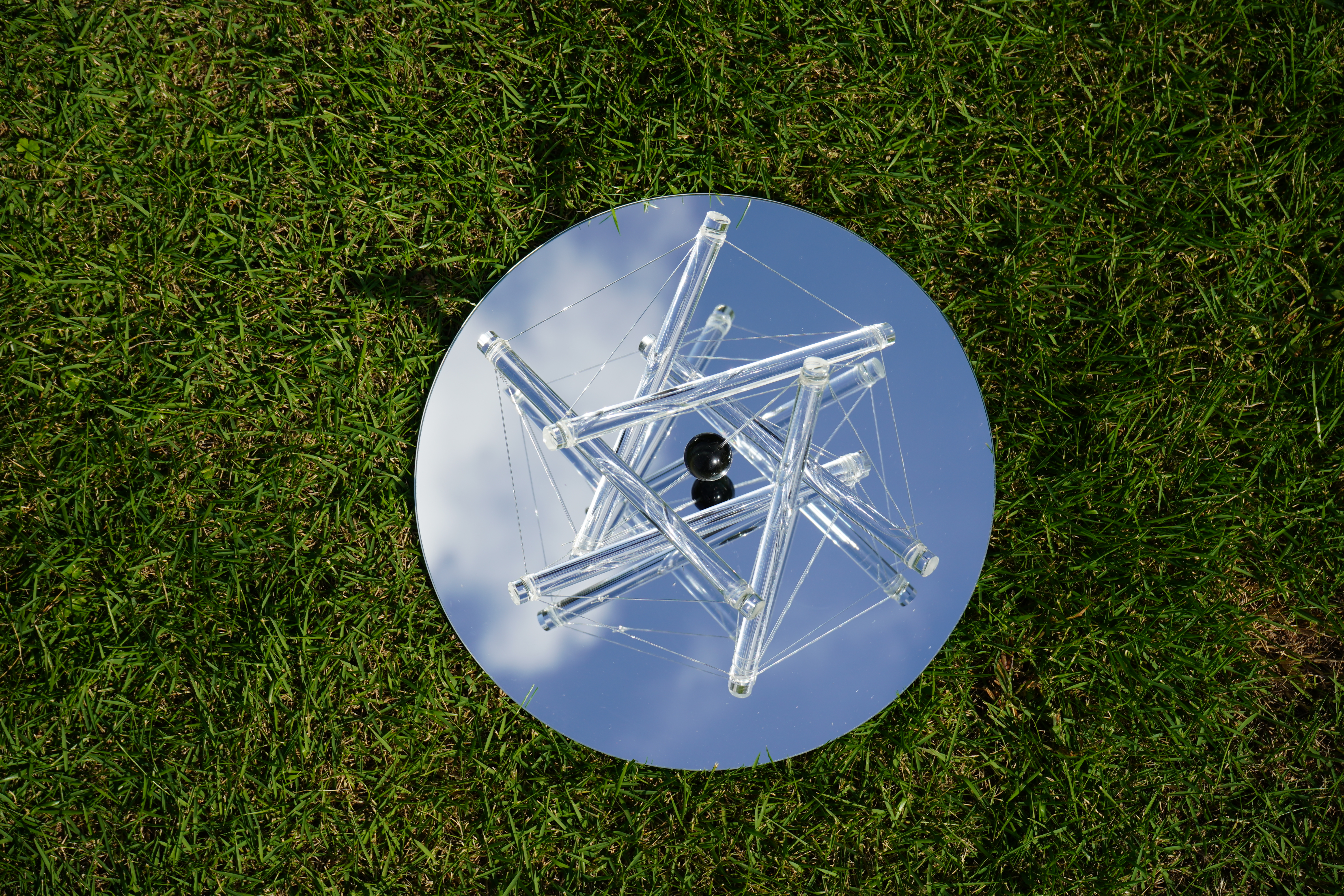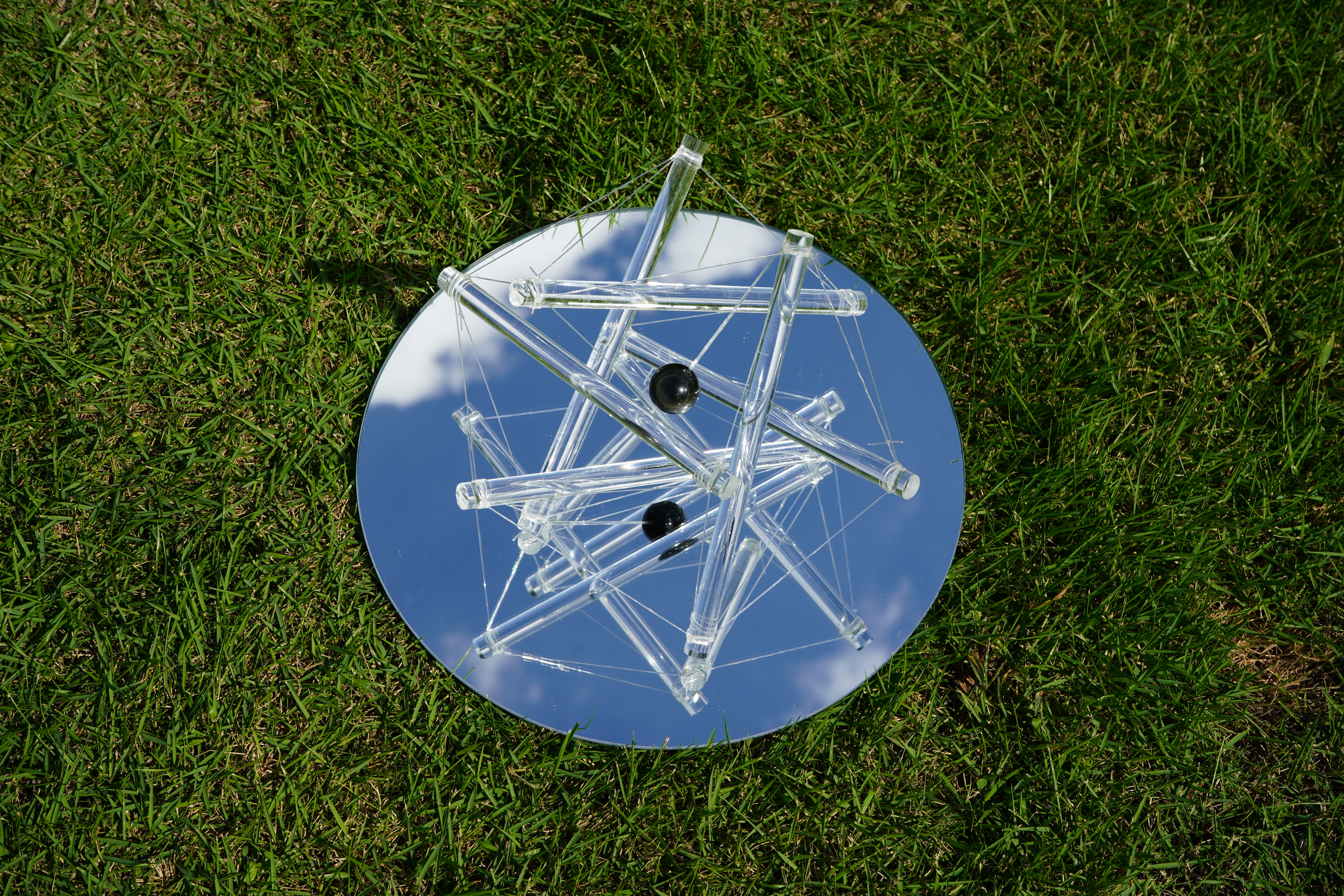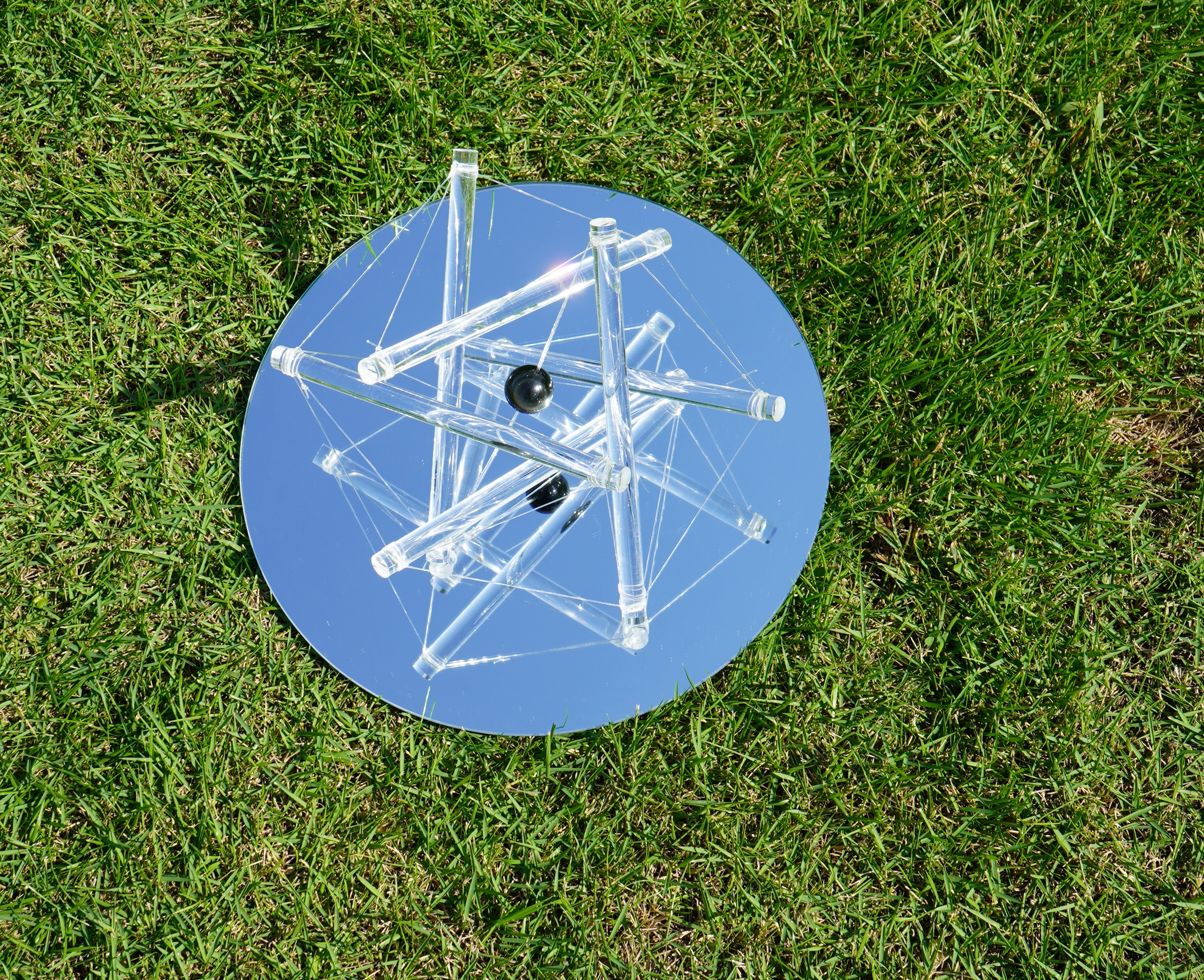 Medium: Acrylic rods, mirror, fishing line, rainbow obsidian