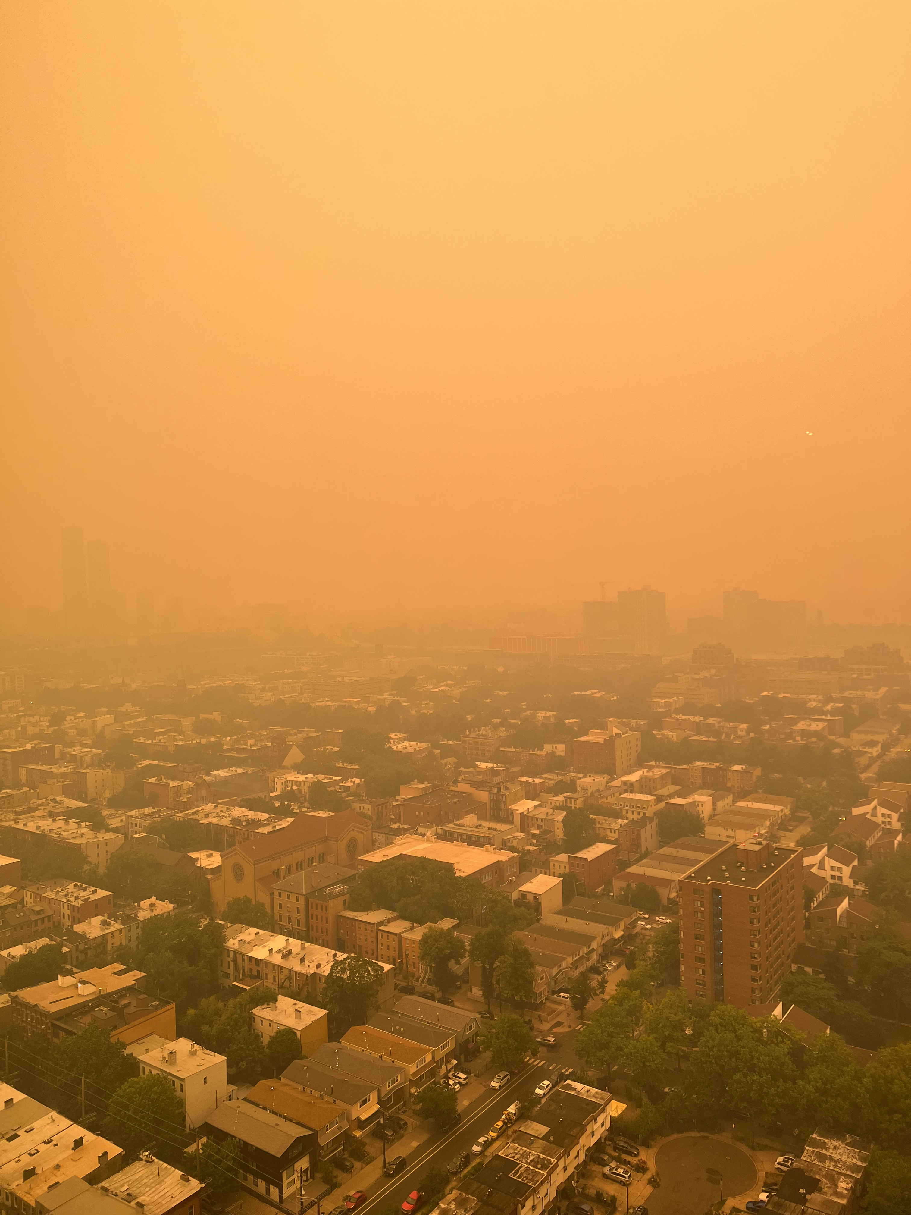 This unaltered photograph captures a disquieting moment from 2023, viewed through the frame of my home window. The familiar view of my neighborhood was transformed, submerged in an unnatural, pervasive orange-yellow light by smoke. This image is a direct record of that phenomenon, where the boundary between the mundane and the apocalyptic dissolved. I am documenting a profound feeling of alienation— our world can become unfamiliar in an instant.